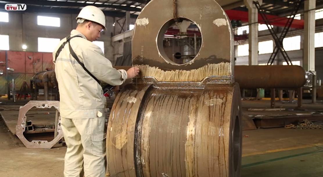 CMEC承接荷蘭TMS公司設(shè)計總包海上風(fēng)電樁管安裝船機(jī)械臂安全卸載在張家港重裝碼頭